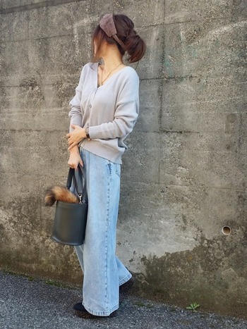 ネックレスを使った 白ニット デニム の人気ファッションコーディネート Wear
